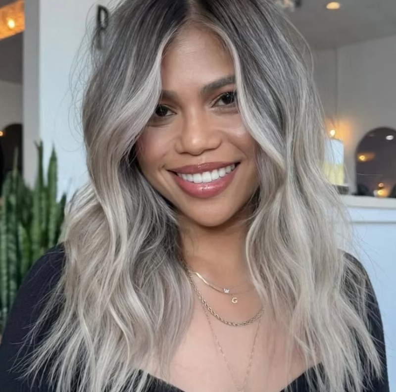 6. بلوند نقرهای با ریشه تیره (Rooty Silver Blonde)