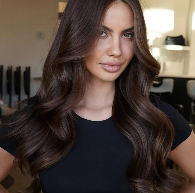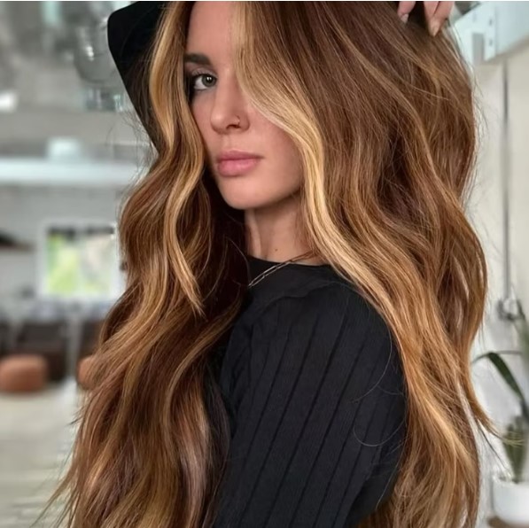 2. قهوهای شکلاتی تیره با هایلایتهای کاراملی