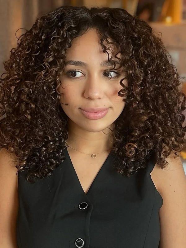 اگر موهای شما فر یا مجعد است و میخواهید رنگ قهوهای شکلاتی را امتحان کنید، استفاده از یک سایه ریشه (Root Shadow) همراه با هایلایتهای ظریف و شفاف شکلاتی را در نظر بگیرید. این رویکرد دو تُنی باعث میشود که بافت زیبای حلقهها یا زیگزاگهای موی شما برجسته شود و به ظاهر کلی، عمق و بُعد فوقالعادهای اضافه کند. برای این کار میتوانید از براقکنندههای رنگی (Color Glaze) استفاده کنید که بدون آسیب، رنگی شفاف و درخششی آینهای ایجاد میکنند.